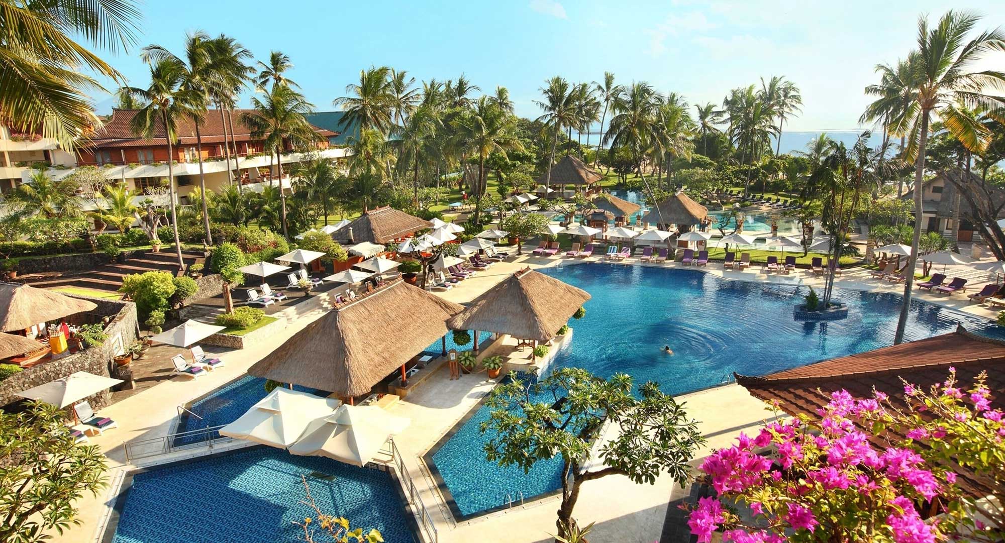 Cet hôtel de luxe à l’architecture balinaise traditionnelle offre un intérieur raffiné et de luxueuses prestations dans un décor dépaysant de jardins tropicaux, de grandes piscines extérieures et d’une superbe plage privée protégée par une barrière corallienne.